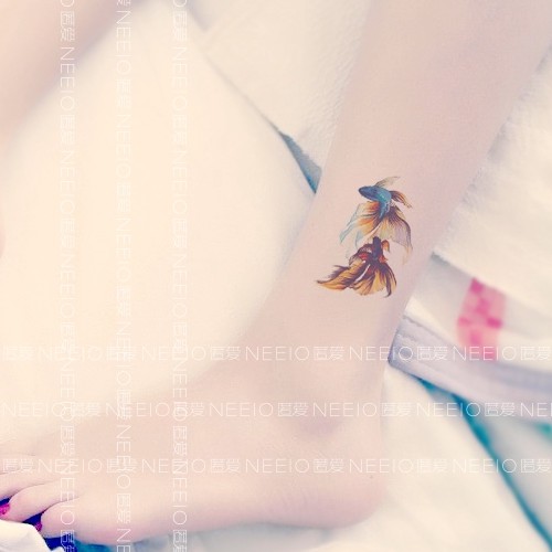 原創3d仿真彩繪孔雀魚刺青貼紙浪漫唯美風彩色金魚紋身貼紙超仙古風金魚刺青腳踝多圖貼紙防汗防水耐貼持久不掉色女